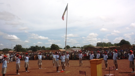We were welcomed at the event by a crowd of about 500 people. It was amazing to see so many kids. I loved seeing the scoutmaster direct his young troop into the raising of the flag and the singing of the national anthem. As the crowd stood up in honor of their country, I loved seeing them salute the flag that represented independence for their country. After a few solemn speeches by the dugutigi and Yeah, the party moved on. Yeah talked about the last 51 years of independence in Mali. He also talked about the upcoming presidential elections and how Ouelessebougou needs to mobilize themselves to support the new leader and change.