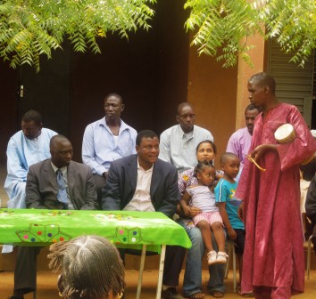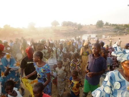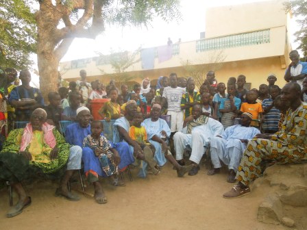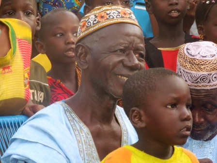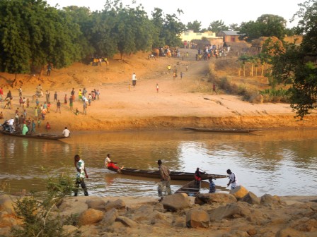 We continued our onward journey to Kayes. We stopped in Khouloun, a small village by the water. This is such a scenic spot. The village is only accessible by boat. We had to cross in one to meet the villagers. It was awesome! This was my first of this kind boat ride. Now I am not the bravest when it comes to depths or heights, but this was a great experience. As we crossed the river, we heard the drums beating and saw the villagers anxiously waiting on the other side. When we reached the banks, we were greeted by scores of children. We were led to the main meeting place where the entertainment began. In this village, each girl wears a headdress that is contiguous with the age group she belongs to. Each of the groups performed to beating drums. When the entertainment concluded, the brother of the dugutigi (chief of the village), welcomed us to the village. Here too in this village was an interesting tradition. Here the people of rank did not speak to each other directly. There was a third person that repeated everything that one person said to the other. It was quite interesting to observe. The dugutigi’s brother expressed his support for Yeah and committed his village to helping Yeah achieve his goal of the Presidency.The mayor too, Assa Mady Diallo, welcomed Yeah to his village and explained the current water issues that his village was having. Yeah promised that he would try to find a solution to the water drinking problem.