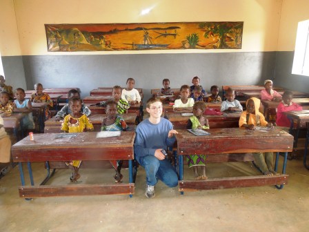 Yesterday was a very special day for the children of Manabougou. This village has seen many blessings for their children in the past year. In 2010, they were blessed with an elementary school donated by the Dixon family to honor their son, Ben Dixon. This village has kept this school beautifully and it looks as new as the day it was donated. It houses 150 + students from grades 7 to 9. Yesterday, their blessings increased threefold. A special non-profit foundation by the name of Building Youth around the World (BYAW) arrived in Manabougou to gift bag packs filled with school supplies and hygiene kits. BYAW co-founder Ian McCracken, accompanied by Boy Scouts Joey and Braedon were welcomed by scores of Malian children as they donated the collected equipment.