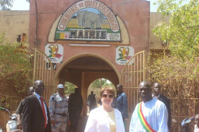 Ambassador Leonard and Mayor Samake in front of the Mayor’s office in Ouelessebougou
